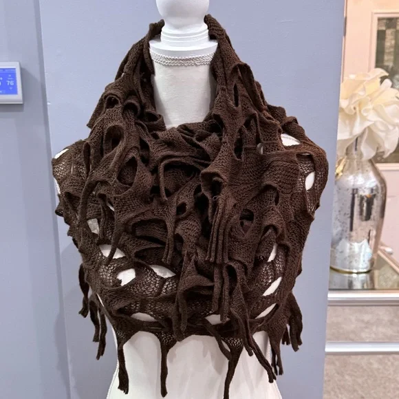 Excellent conditionDark brown Infinity scarfInfinity warm, winter, cozy, quality, timeless, classic, trendy, comfortable, durable, fashionable, stylish, timeless, classy, classic, chic, sophistication, sophisticated, contemporary, essential, traditional, lightweight, casual, dress up, dressy, timeless, modern, daytime, evening, versatile, office, work, night out, date night, edgy, layering, summer, winter, spring, fall, vintage, retro, Y2K, 90s, 80s, comfy, comfortable, 1920s, business core, polished, corporate, professional, office attire, elegant, date night, granny-core, grandma-core, professional, concert, mob wife, boho, bohemian